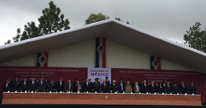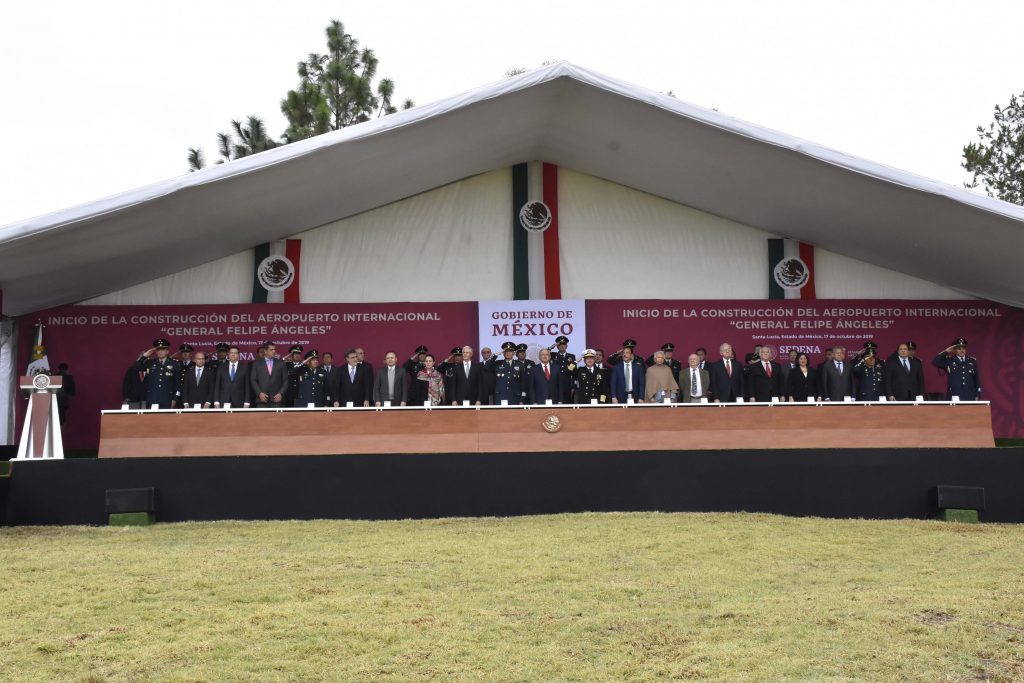 Ceremonia de Inicio de la Construcción del Aeropuerto Internacional General Felipe Ángeles, celebrada en la Base Aérea Militar No.1 Santa Lucía el 17 de octubre del 2019.