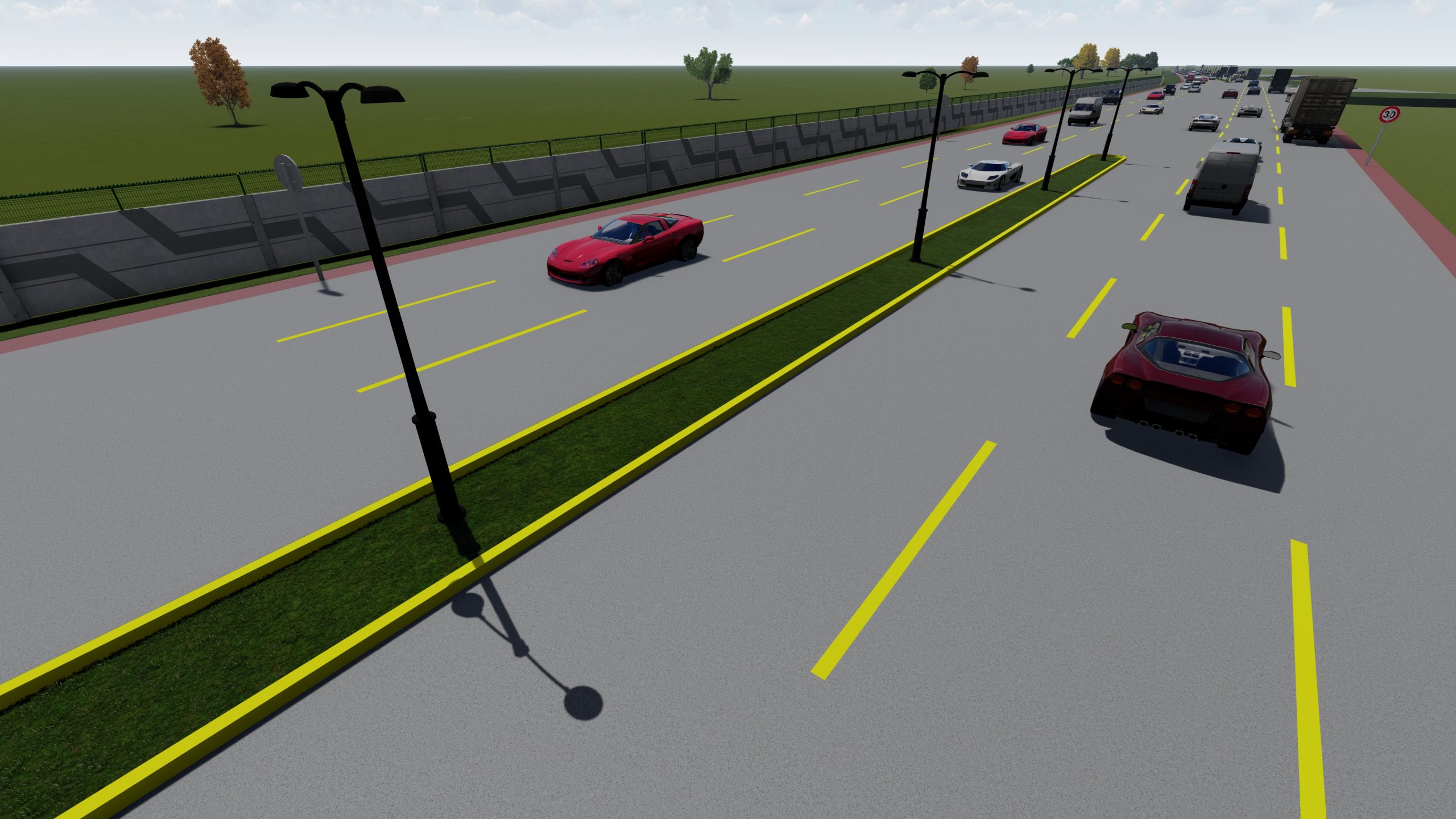 Las vialidades incluyen secciones de seis, cuatro y dos carriles de concreto hidráulico, así como un camino de terracería para vigilancia perimetral.