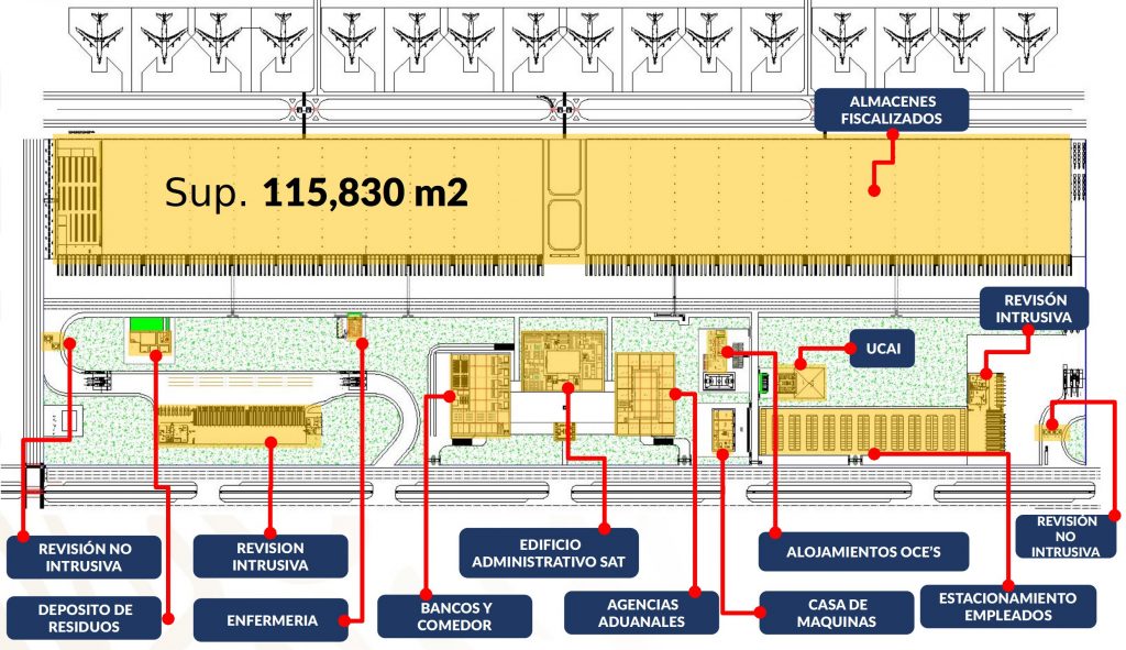 Gracias a la ubicación privilegiada del Aeropuerto Internacional General Felipe Ángeles (AIFA), su terminal de carga será un “hub estratégico” y punto neurálgico de carga, el más importante del país dada su conectividad con los principales puertos, ciudades y a los principales ejes carreteros y ferroviarios.