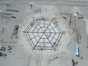 Comenzó el montaje de la estructura metálica del fuste de la Torre de control. En el estacionamiento prosiguieron los trabajos de conformación, el afine de muros del sótano de servicios y la instalación de los ductos para el cableado del sistema de iluminación.