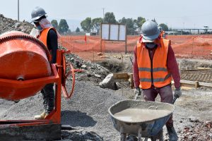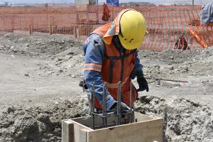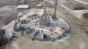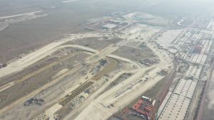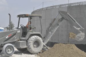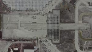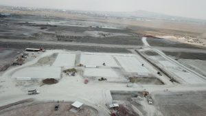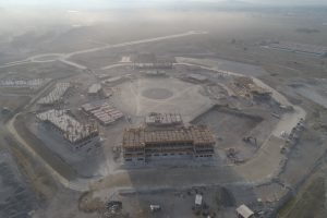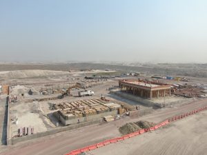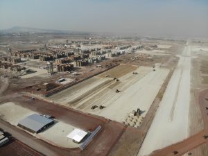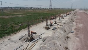 Prosiguen los trabajos de montaje de la estructura metálica del fuste de la Torre de control al igual que de las estructuras de las áreas administrativas. Se avanza en la construcción de muros y las instalaciones de los edificios de las áreas administrativas. Se efectuó colado de concreto para las losas de las tapas de las cisternas para los Servicios de Extinción de Incendios. Comenzó la colocación de base hidráulica para las vialidades que conectan a las diversas instalaciones de este complejo.