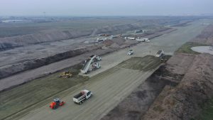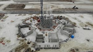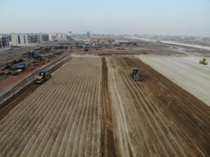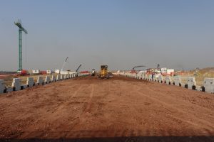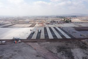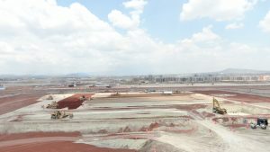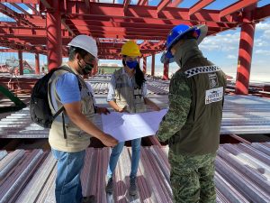 Se realizan trabajos de colado de cimentación, reforzamiento de las columnas en el área de cocina del comedor, se llevan a cabo trabajos de relleno en plataformas y vialidades, excavación de cepas y armado de acero de refuerzo para cimentación en el auditorio. Además del colado de losa de cimentación del alojamiento de jefes, oficiales y tropa. En el Complejo Logístico no se detienen los trabajos de relleno y compactación de plataformas y vialidades con material mejorado, el colado de plantilla en hangar de acopio y habilitado de acero de refuerzo en diversos edificios.
