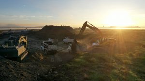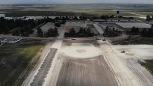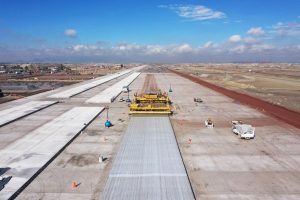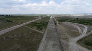 Se trabaja en la excavación para el desplante de la estructura del pavimento, conformación del terraplén y tendido de la capa con base hidráulica. Lo que respecta a la Pista Central se realiza el tendido de concreto de alta resistencia, en Calles de Rodaje y Plataformas se realiza se trabaja en las ultimas capas de terraplén mejoradas con cemento para aumentar su carga y base hidráulica, el tendido de la capa de concreto magro y tendido de concreto de alta resistencia como acabado final de pista conformando la capa superior y de rodamiento de la estructura del pavimento.