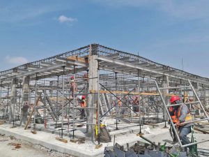 Se lleva a cabo el montaje de estructura metálica, colocación de lámina, habilitado de acero de refuerzo y colado de losas de entrepiso, al mismo tiempo se colocan muros divisorios y perimetrales en salas de última espera y el mejoramiento en edificio catering llevan