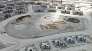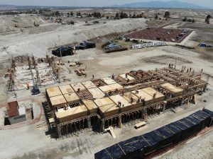 Trabajos de habilitado de acero y cimbra para el colado de columnas, trabes, losas de entrepiso y azotea, la construcción de muros con block, el repellado y aplanado fino con estuco y mortero en muros interiores y exteriores de edificios, la colocación de instalaciones hidráulicas, sanitarias y de ductería para instalaciones eléctricas y los trabajos de acarreo de material mejorado, relleno y compactación en vialidad perimetral y estacionamientos. Continuando así en la vialidad principal con la excavación, acarreo, relleno con material mejorado y la compactación e instalación de tubería para drenaje pluvial.
