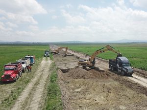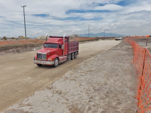 Se tienen trabajos en topografía, conformación de terraplén, explotación y relleno en bancos de préstamo; en la estructura del pavimento se realiza la colocación de la base hidráulica, colocación de concreto magro y construcción de losa de Concreto.