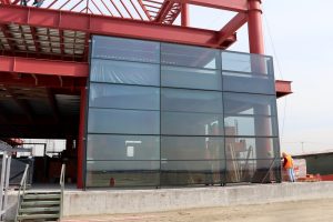 Se trabaja en el montaje y nivelación de estructura metálica de la cuarta y quinta sección del fuste. Al mismo tiempo se trabaja en el montaje de columnas y trabes de la estructura metálica de los edificios adosados del área administrativa y así mismo la instalación de soportes y redes en sótanos.