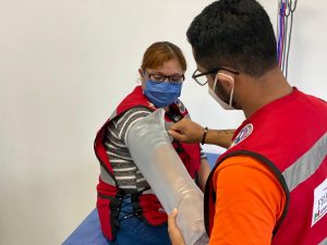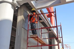 Ya se trabaja en el acabado en fachada y baños públicos, trabajando exitosamente en el montaje de estructura metálica, colocación de lámina de acero, habilitado de acero de refuerzo, la colocación de muros divisorios y perimetrales y el revestimiento rustico en muros de salas de última espera. Por último, se aplica pintura aislante contra fuego en columnas y vigas metálicas.