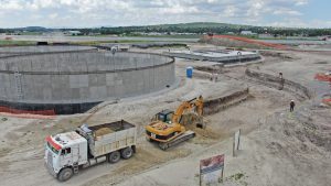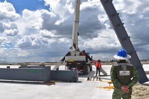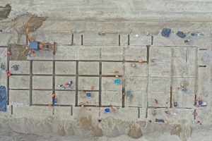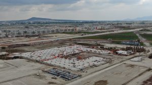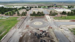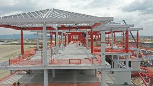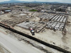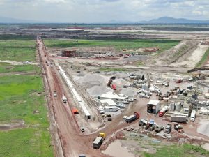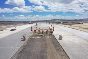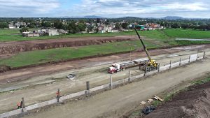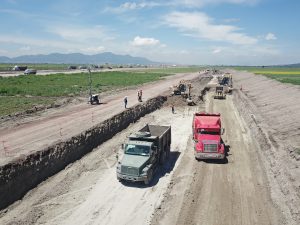 Respecto a los trabajos realizados en la Pista Norte se avanza en la excavación para el desplante de la estructura del pavimento, conformación del relleno de tierra, tendido de la capa con base hidráulica y tendido de la capa de concreto. Sigue la conformación de las últimas capas de tierra mejorada con cemento para incrementar sus propiedades de capacidad de carga y base hidráulica en calles de rodaje y plataformas, y respecto a la pista central se realiza la apertura de caja para el desplante de la estructura del pavimento y conformación del terraplén.
