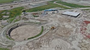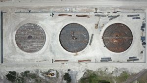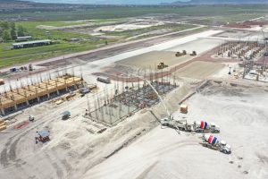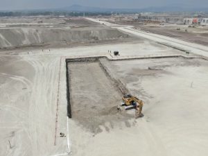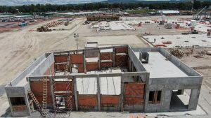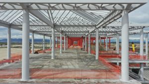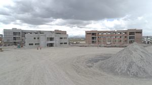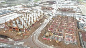Se inicia con la colocación de fachada de vidrio, a su vez se realizan trabajos para la preparación de instalaciones hidráulicas, sanitarias, eléctricas y aire acondicionado. Continuando con el levantamiento y montaje de estructura metálica de manera simultánea, aplicación de pintura retardante al fuego. En el otro edificio se hacen trabajos de habilitado de acero de refuerzo y de madera para cimbra.