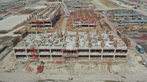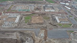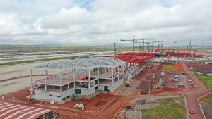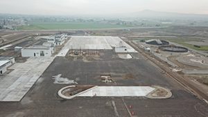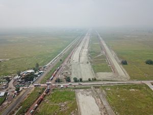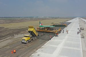 Se trabaja en la compactación de base hidráulica en la vialidad perimetral del tramo del acceso hacia la puerta 3, lo que respecta al tramo de Xaltocan se realizan trabajos de control topográfico y verificación de niveles de la vialidad.