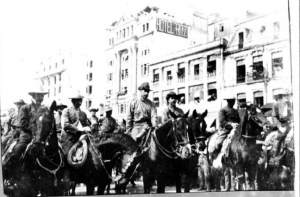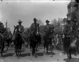 El texto del historiador Pedro Salmerón, en su libro “1915 México en Guerra” escribe al respecto: “… en el lugar de honor, ataviado con un magnífico traje de charro y montando un caballo rosillo, Emiliano Zapata. A su derecha cabalgaba el general Tomás Urbina, el León de Durango; junto a él marchaba el joven general sinaloense Rafael Buelna. A la izquierda de Zapata, haciendo caracolear a su soberbio alazán tostado, el general Francisco Villa, enfundado en un sobrio uniforme azul… los seguían 18 000 hombres de las tropas del Sur, y cerraban el desfile 15 000 soldados villistas de las tres armas encabezados por el general Felipe Ángeles”.