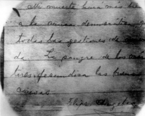 Después permaneció en posición firme, tranquilo, con los ojos abiertos, esperando las balas. El tiro de gracia se lo dieron poniendo una bota en su cuello. Y ahí termino todo. A las 6.45 horas.