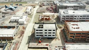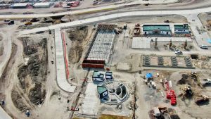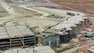 Aquí se llevan a cabo trabajos de construcción del camino a base de concreto de alta resistencia, trabajos de pasos pluviales, y en la colocación de ductos para red de fibra óptica.