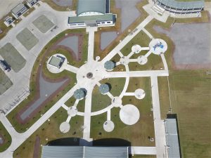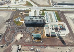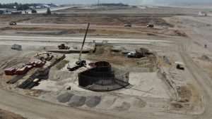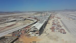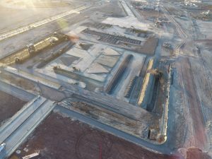 Se trabaja en la colocación y levantamiento de muñones para recibir bastidores triangulares iluminados. Además se trabaja en la instalación de malla en triángulos iluminados.