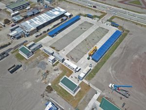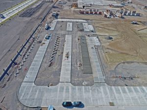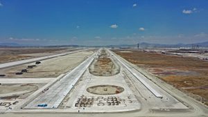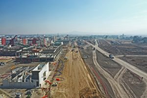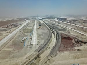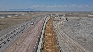 Lo que respecta a la Calle de Rodaje y Plataformas, se continúan los trabajos en la conformación de terraplén, tendido de la capa de base hidráulica, tendido de la capa de concreto magro y alta resistencia como superficie de rodamiento. Además del cableado eléctrico, bases y luminarias para los sistemas de luces. Tendido de mezcla asfáltica en márgenes de calles de rodaje. Estructura de concreto para los pasos a desnivel.