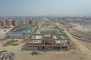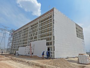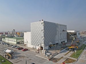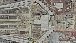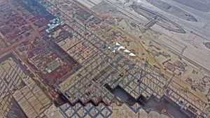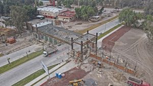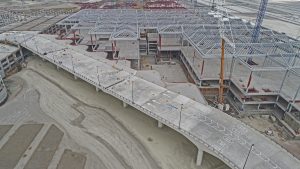 Se trabaja en el levantamiento de la estructura metálica en cubierta, rampas y escaleras de servicio, la colocación de pintura en columnas y vigas y las láminas galvanizadas. También, se colocan transformadores eléctricos y la instalación de las juntas sísmicas entre módulos.