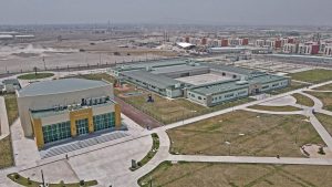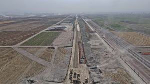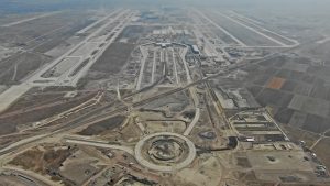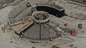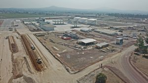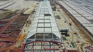 En este frente se trabaja en la colocación de parasoles en 12 cajones del estacionamiento de la Torre de Control, además se trabaja colocando las placas de anclaje de contrafuertes. También se trabaja en el levantamiento y montaje de bastidores triangulares iluminados.