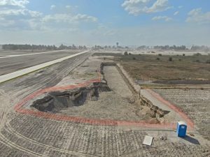 Se realiza la limpieza, trazo y nivelación en el área de hangares de M.R.O., así como actividades de liberación en materia de flora y fauna y la excavación para plataforma de aeronaves.
