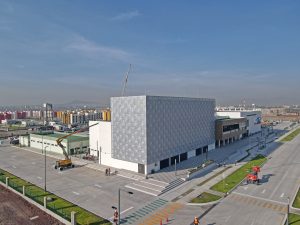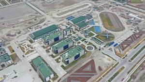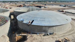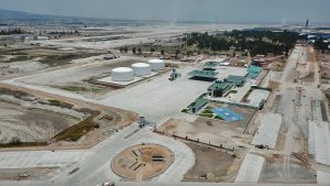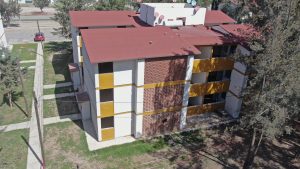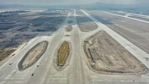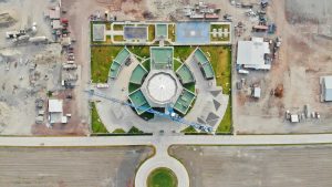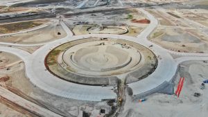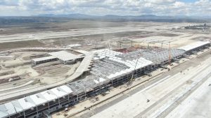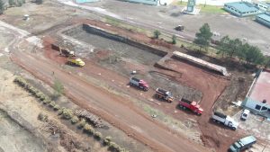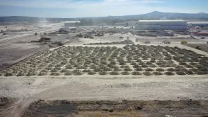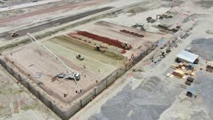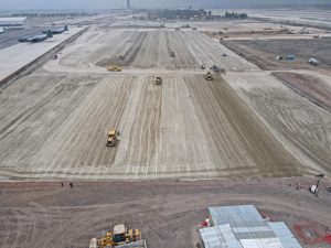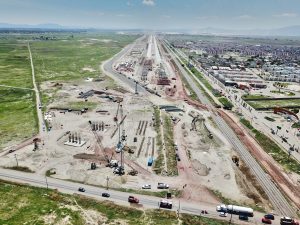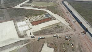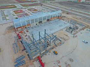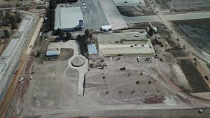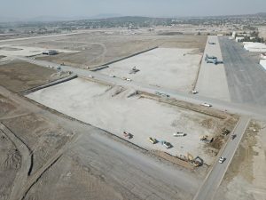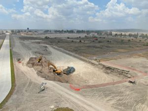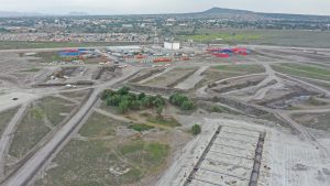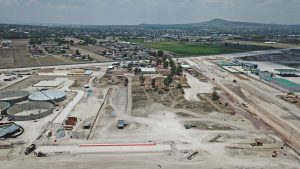 Respecto al estacionamiento para empleados, se trabaja en la nivelación y el apuntalamiento de losacero, habilitado, colocación y nivelación de anclas sobre banquetas para postes de luminarias, la colocación y nivelación de tubería de pvc para pasos de sanitarios y las preparaciones para luminarias y arbotantes.