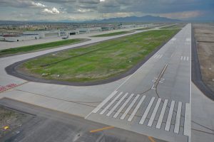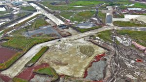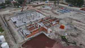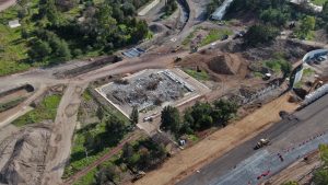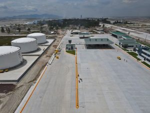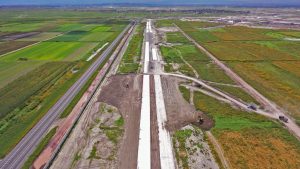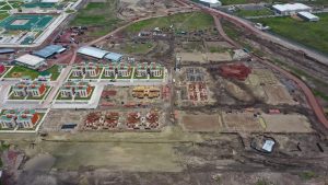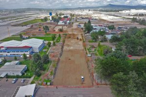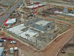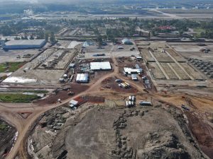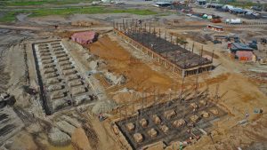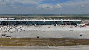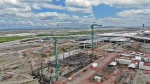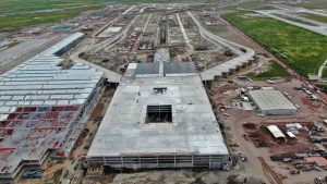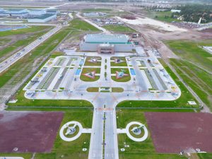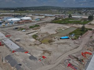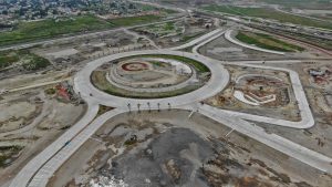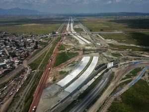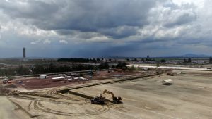 En la Glorieta de Acceso, se realizan trabajos de cimentación de la base estructural para la escultura del “General Felipe Ángeles”, se realiza el colado y acabado de concreto y el lavado en explanada del mirador. En el Área de Transferencia de Seguridad del AIFA, se realizan trabajos de aplanado fino en muros interiores y exteriores en edificios, colado de banquetas perimetrales en edificios.