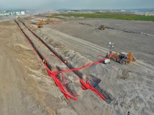 Se trabaja en la instalación de escaleras eléctricas, sistema de equipaje, aeropasillos, puertas automáticas de doble hoja en diferentes áreas, domos, canalones, galvatecho y fachada a base de vidrio. También se trabaja en la instalación del hito nacional y la colocación de mármol y porcelanato en piso de salas de última espera.