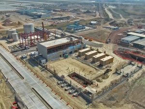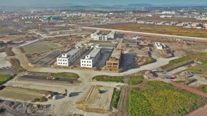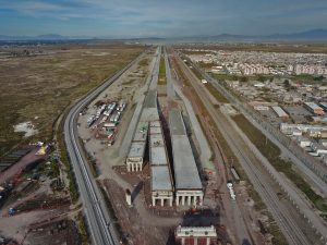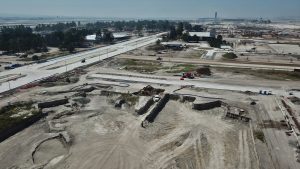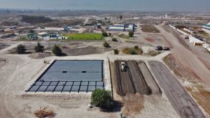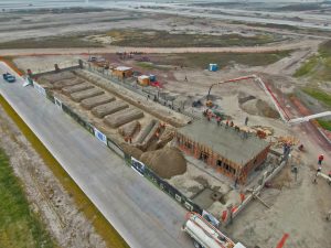 Se trabaja en el colado de registros de lluvias en vialidad 2 con concreto, además se continua en la aplicación de acabado fino en muros de cuarto de TIC ́S y la construcción de muros de mampostería con tabique multiperforado en Subestación Eléctrica.
