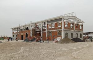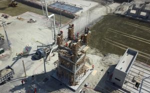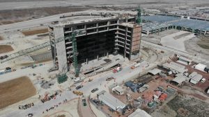 Se lleva a cabo la conexión de coladeras a bajadas pluviales y las conexiones en la instalación sanitaria y pluvial a la red general. Además, en los cubos de elevador se realizan trabajos en la aplicación de pasta automotriz para su pintado y acabado final.